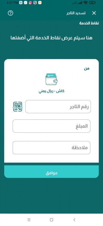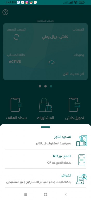• يقوم العميل من خلال تطبيق كاش باختيار أيقونة الوصول المختصر من الشاشة الرئيسية - الدفع عبر QR.